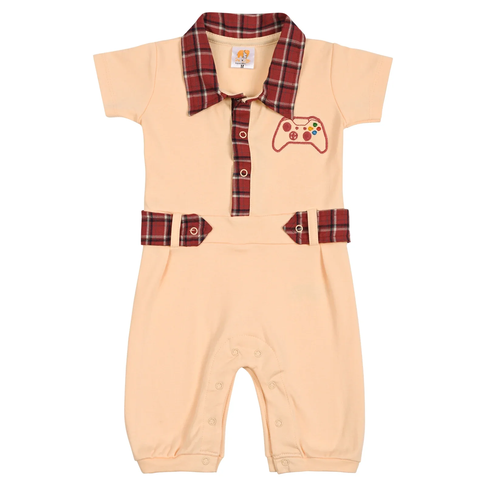 Give your little one a smart and playful look with our Apollo Baby Romper. Designed with a trendy shirt collar and checkered detailing, this romper combines style with comfort. Made from soft and breathable interlock