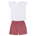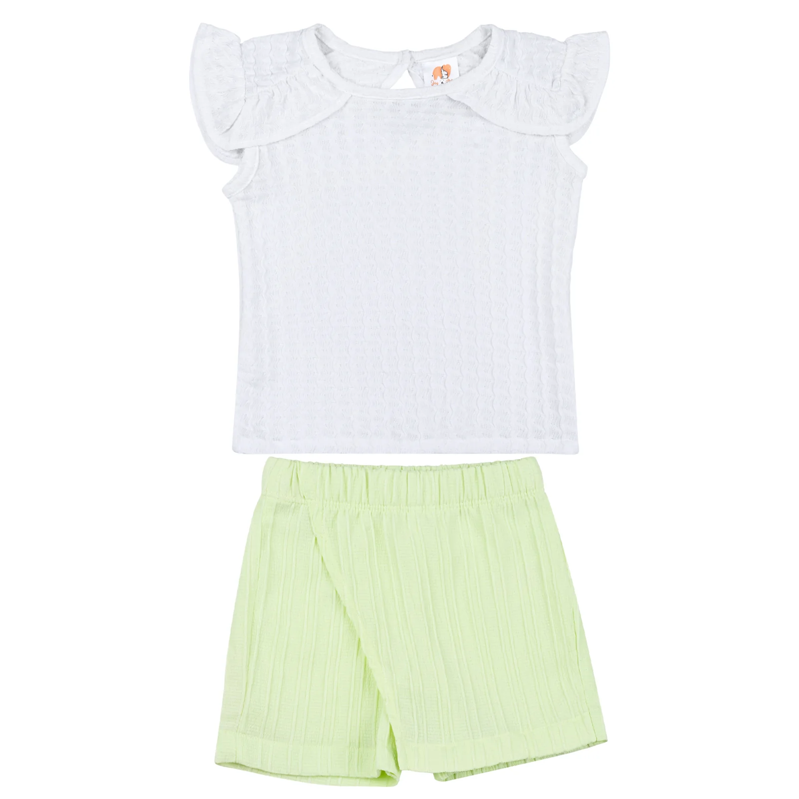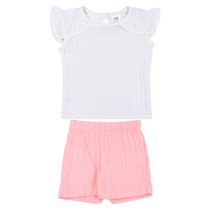 The Jamie Baby Girl Top & Shorts Set is the perfect blend of comfort and style for your little one. Featuring a soft, textured premium fabric with a frilled cap-sleeve top and easy-to-wear elastic shorts, this outfit is ideal for daily wear and summer outings. Available in sizes 3-6 months, 6-12 months, and 12-18 months.