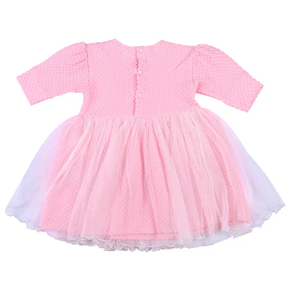 Crafted from premium-quality interlock fabric, this dress is gentle on delicate skin, breathable, and easy to maintain. The elegant design makes it a perfect choice for baby photoshoots, gifting, and special occasions.