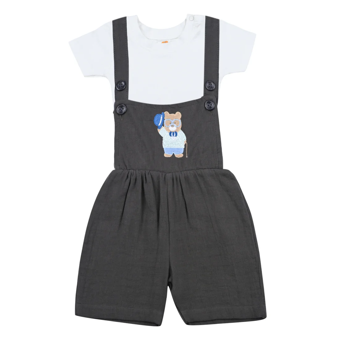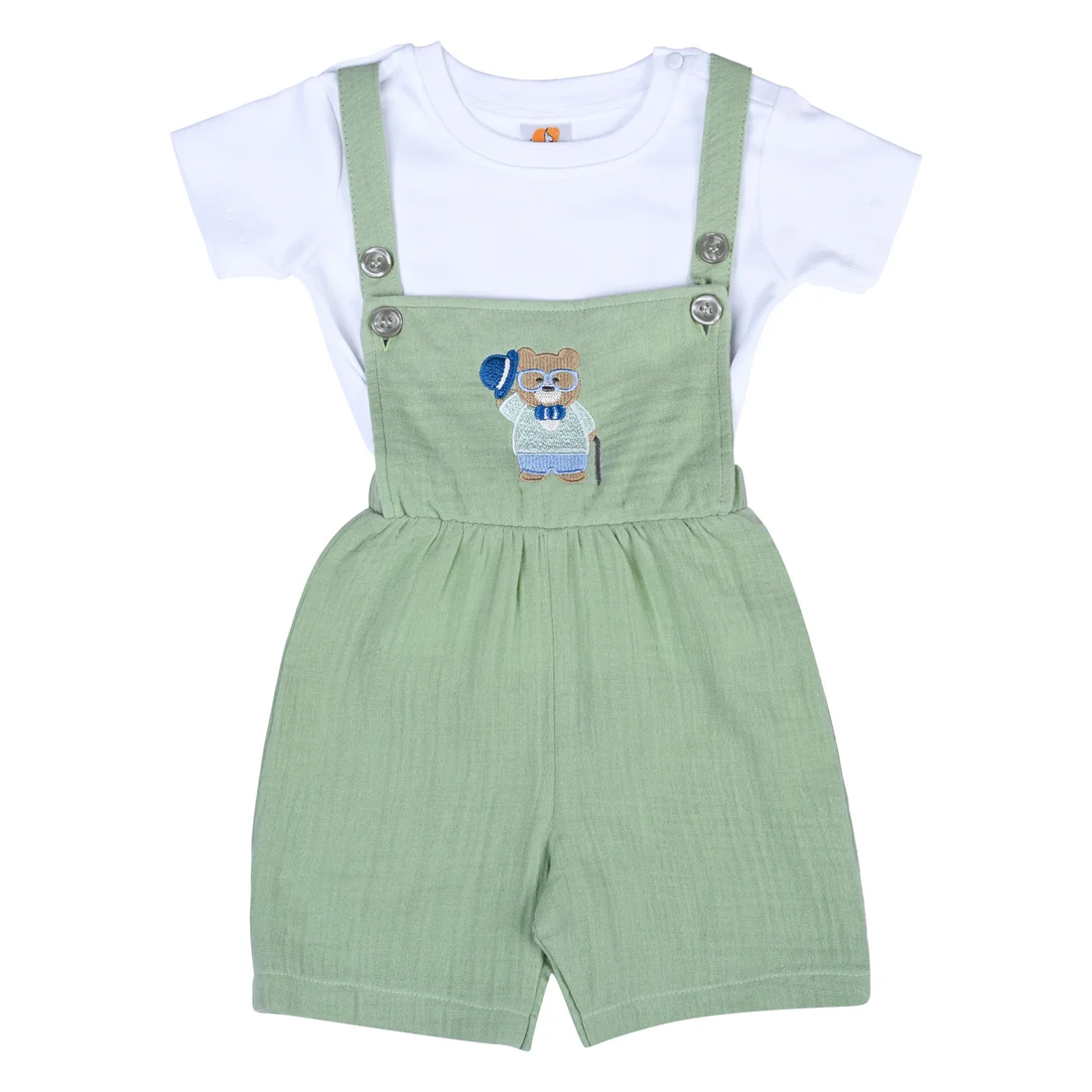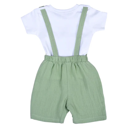 Keep your baby boy looking smart and feeling comfy with the Mike Baby Outfit Set. This two-piece set includes a stylish collared shirt with button details and matching shorts, both crafted from soft and breathable interlock cotton. Gentle on delicate skin and designed for ease of movement, it’s perfect for daily wear, family gatherings, and special occasions. Available in sizes 3–6 months, 6–12 months, and 12–18 months.