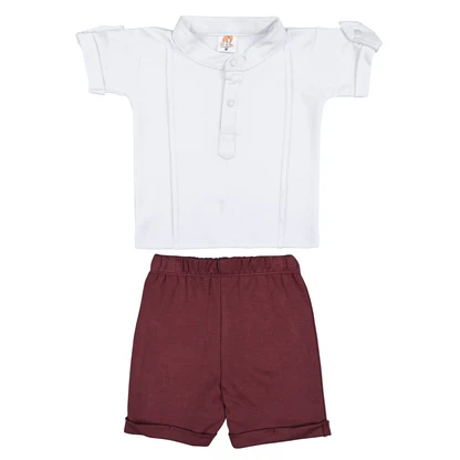 Upgrade your baby’s everyday look with the XAVI baby t-shirt and shorts set from Joy ‘n’ Me. This smart and comfy outfit features a soft polo-style top with a button placket and rolled sleeves, paired with solid cotton shorts. Designed for babies aged 3 to 18 months, it’s a perfect blend of style and comfort.